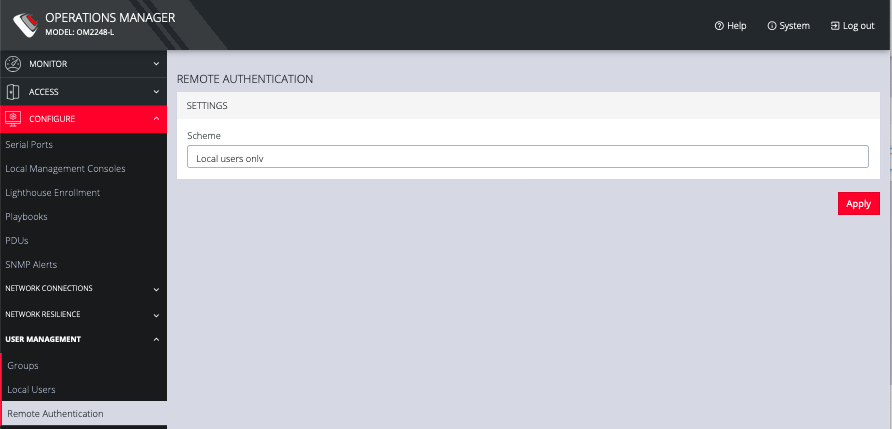 CONFIGURE > USER MANAGEMENT > Remote Authentication