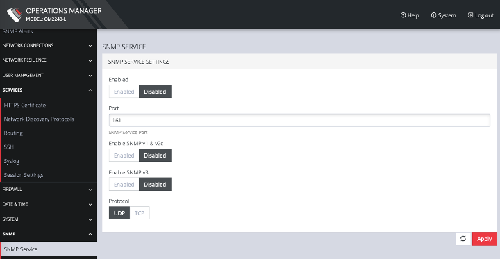 You can also specify the SNMP Service Port and choose between UDP or TCP for the Protocol.