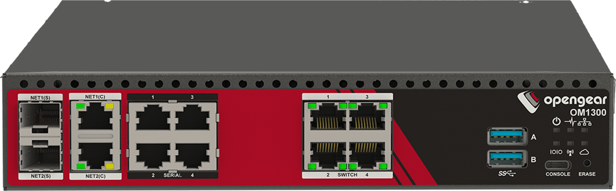 The OM1300 Operations Manager is a compact, all-in-one appliance designed to deliver resilient out-of-band access for edge, branch, retail, and industrial environments. By combining serial console access and Ethernet switching into a single platform, the OM1300 eliminates the need for multiple devices while maintaining the reliability and security Opengear is known for.